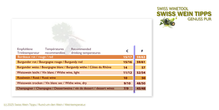 Weintemperaturen / Bücher Weinwissen Sie suchen Informationen zum Wein. Zum Beispiel die richtige Weintemperatur. Gute Bücher helfen weiter. Hier finden Sie Weinbücher und mehr. Besuchen Sie die Seiten von Swiss Hometool mit dem Angebot zu Büchern. Weinbücher sind gute Berater. Auch für Weintemperaturen. |