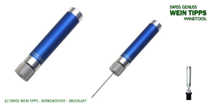 Weinaccessoire / Druckluft Korkenheber Weinkorkenheber mit Druckluft. Eine weitere Methode um Korken aus Weinflaschen zu entfernen. Korkenzieher mit Druckluft, die durch den Korken eingebracht wird. Dargestelltes Beispiel von BottleTool. |